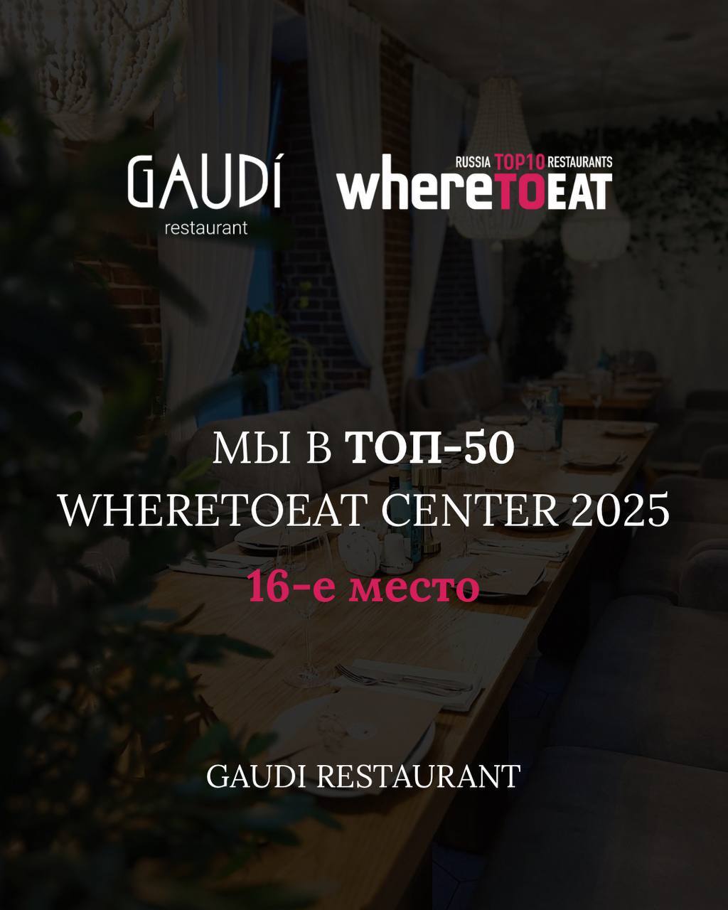 Ресторан GAUDI — 16 место в премии WHERETOEAT 2025 среди лучших ресторанов Центральной России!